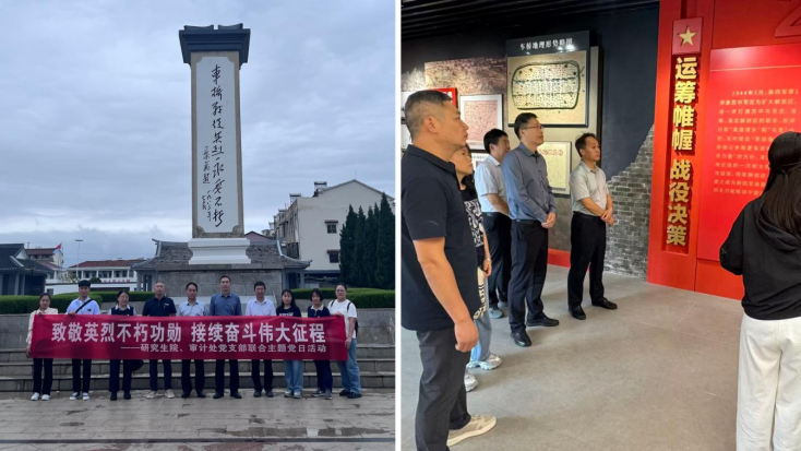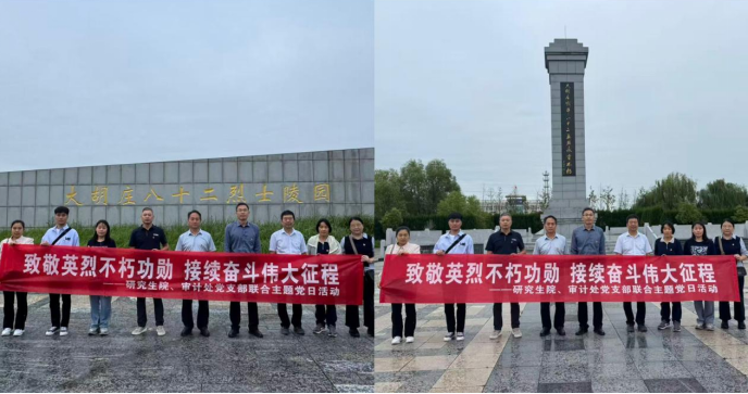 阴云低垂,松柏凝翠。为纪念中国人民抗日战争暨世界反法西斯战争胜利80周年,2025年9月26日下午,研究生院党支部与审计处党支部全体党员在庄严肃穆的氛围中开展“铭记历史 砥砺前行”联合主题党日活动,先后瞻仰车桥战役纪念广场与大胡庄战斗遗址。